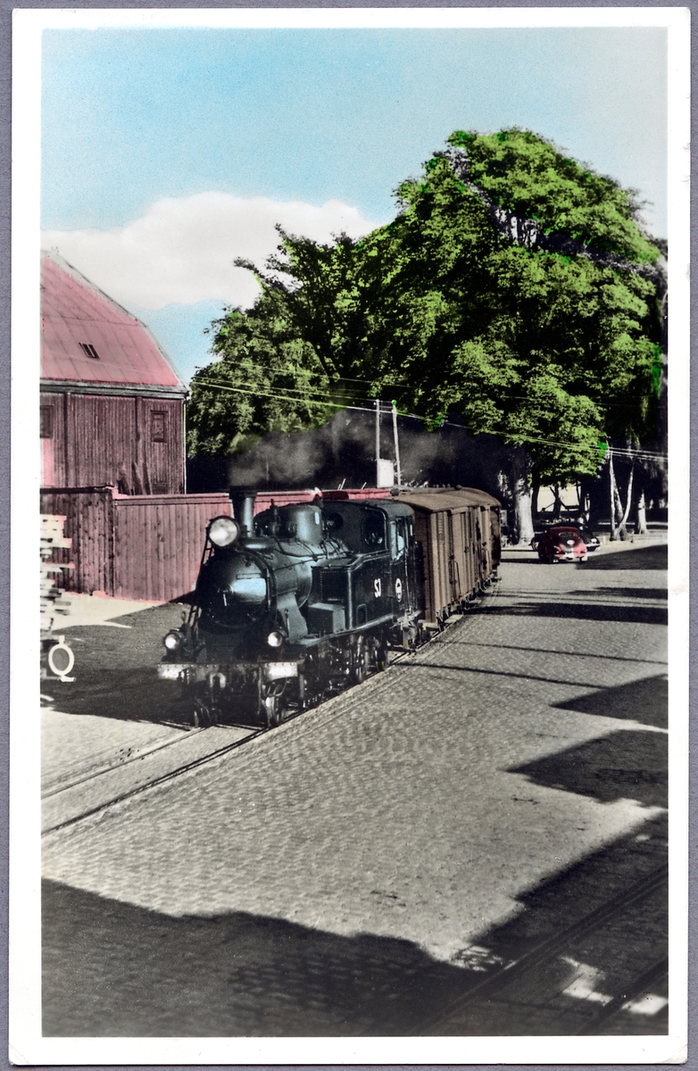 Titel: Godståg passerar genom Karlshamn på Blekinge Kustbanor.