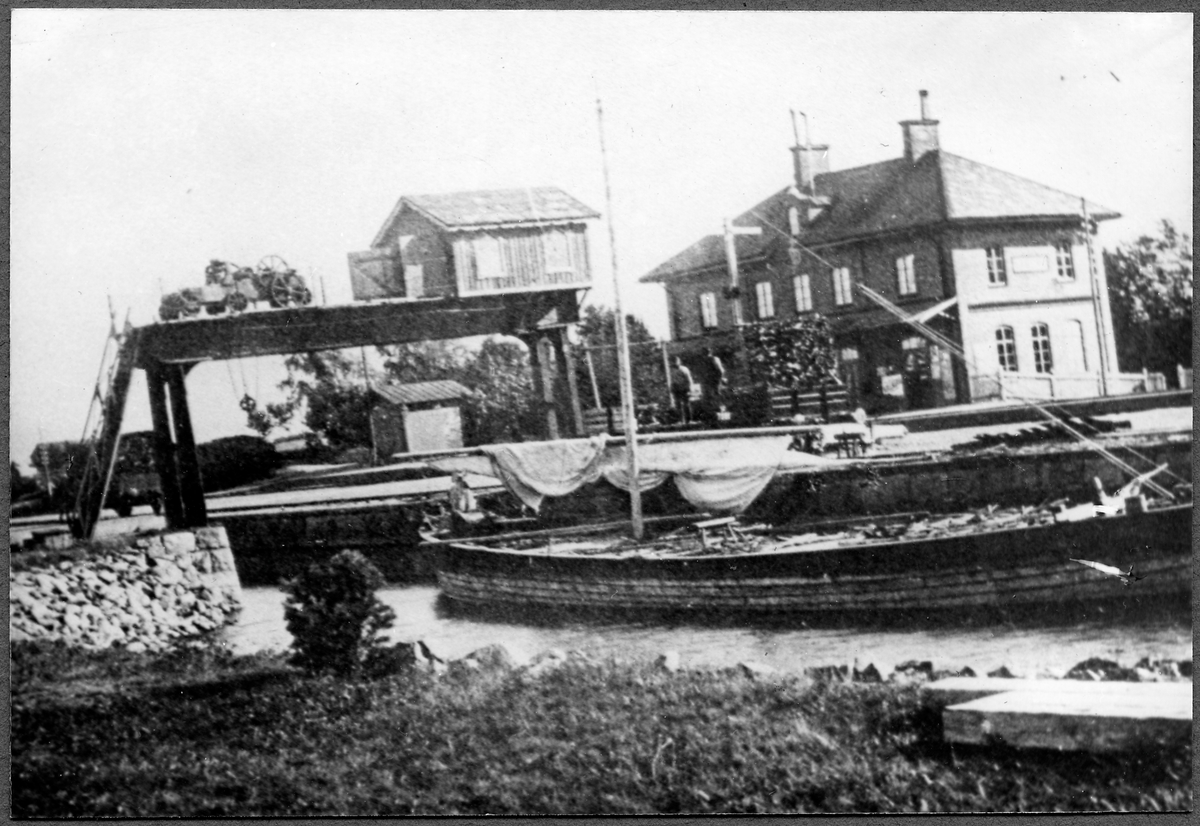 Titel: Omlastning mellan båt och järnväg vid Eksund station.