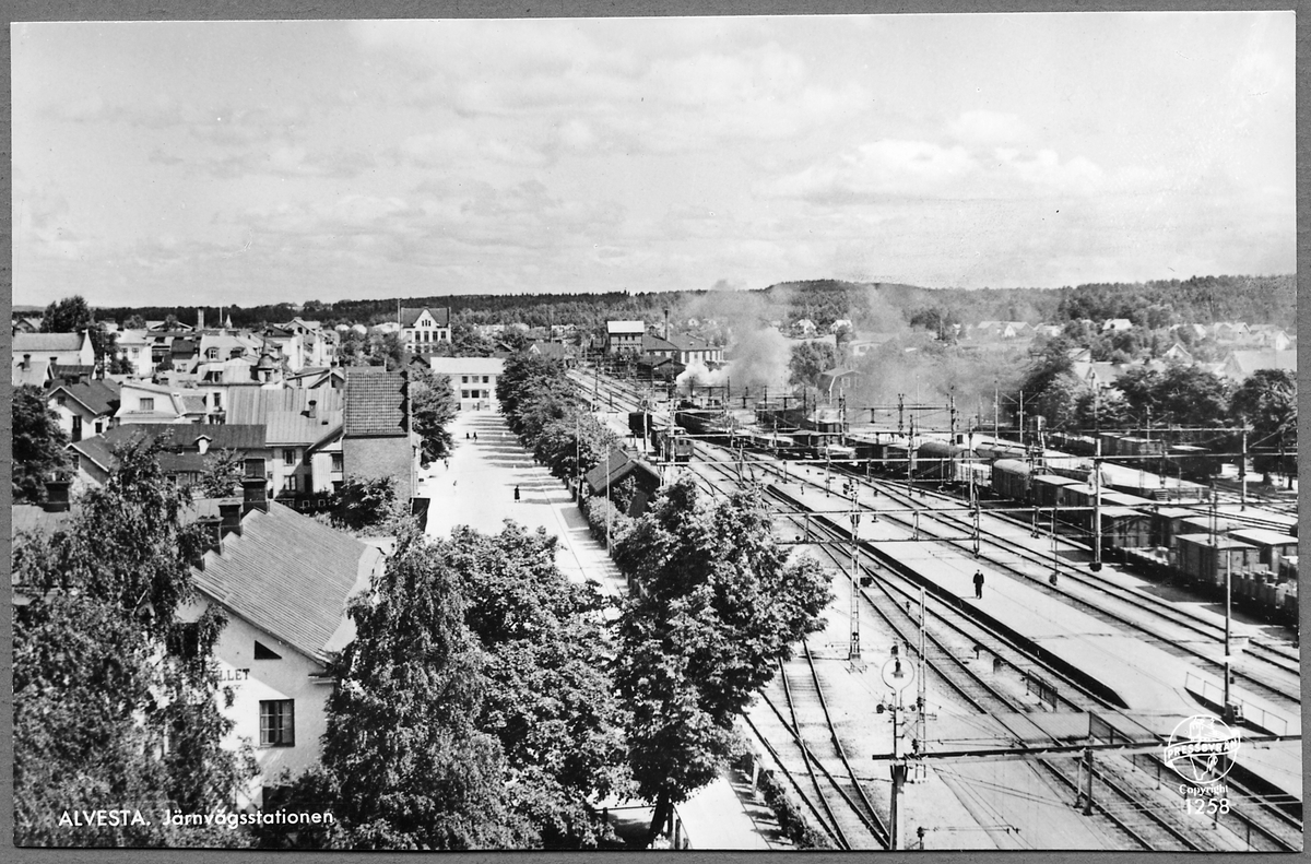 Titel: Alvesta järnvägsstation. Utsikt från övre plan mot norr.