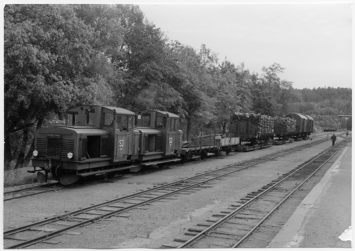 Statens Järnvägar, SJ Z4p 324 och SJ Z4p 312. Sista ordinarie godståg från Valdemarsvik på linjen Norrköping och Söderköping.