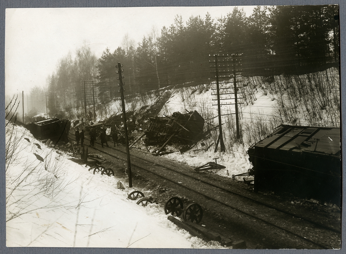 Titel: Urspårade vagnar ligger på sidan av järnvägslinjen.