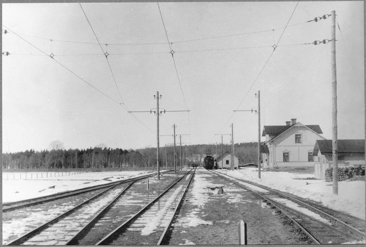 Titel: Borensberg bangård i bakgrunden MÖJ 1 "Ankan". Mellersta Östergötlands Järnväg.