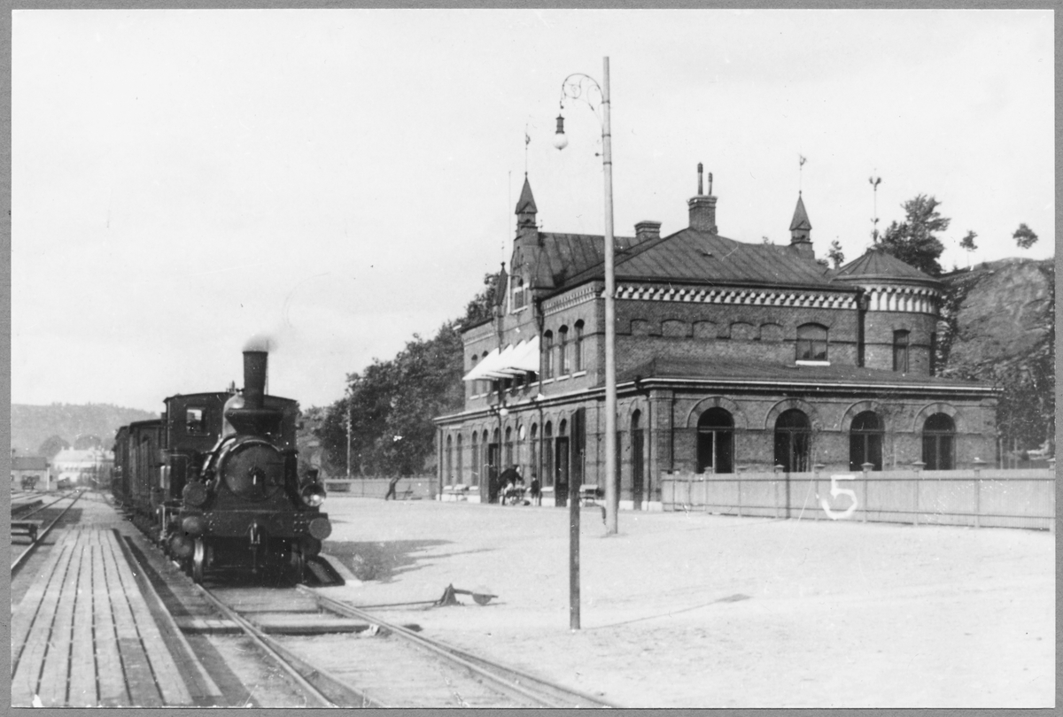 Titel: Borås nedre station på 1890-talet. KHdJ 3 med tågsätt.