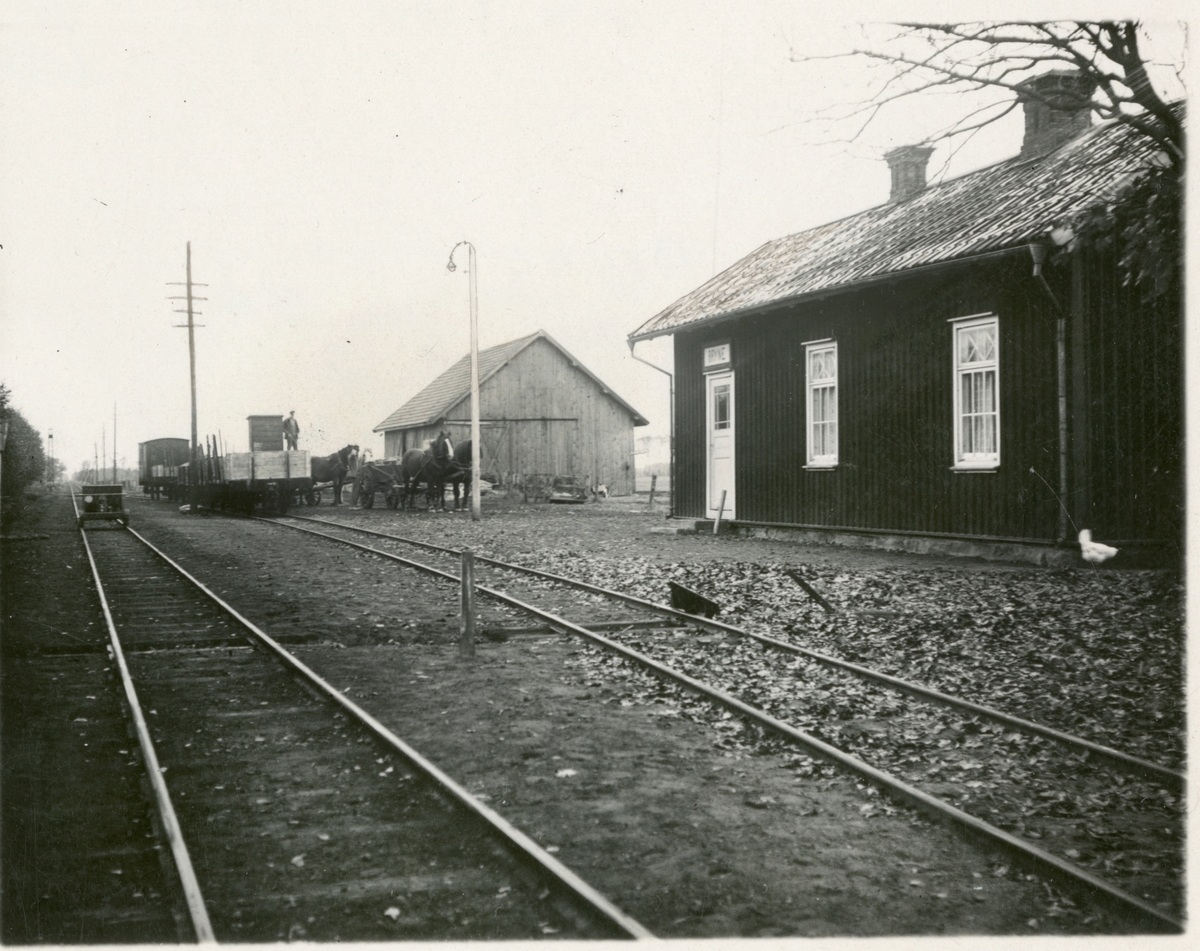 Titel: Sockerbetslastning vid Bryne station på 1920-talet. Lidköping - Håkantorps Järnväg.