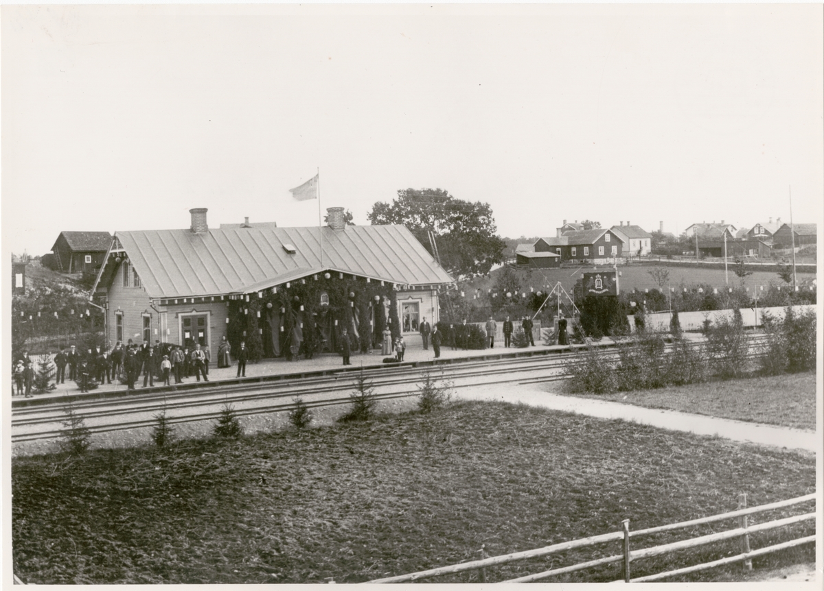 Bräkne-Hoby station vid konung Oscar II genomresa, troligen år 1905