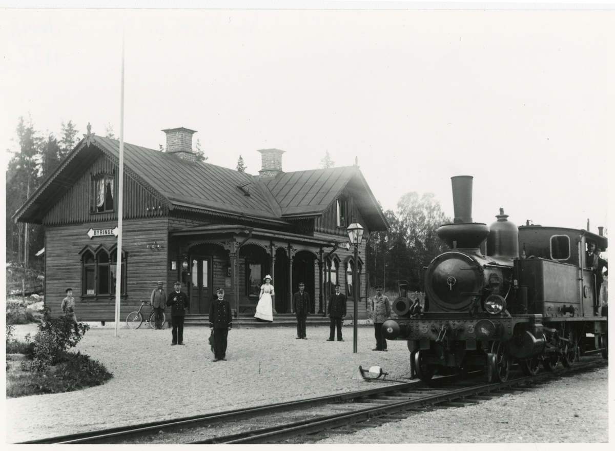 Byringe station. Norra Södermanlands Järnväg, NrSlJ lok 3.