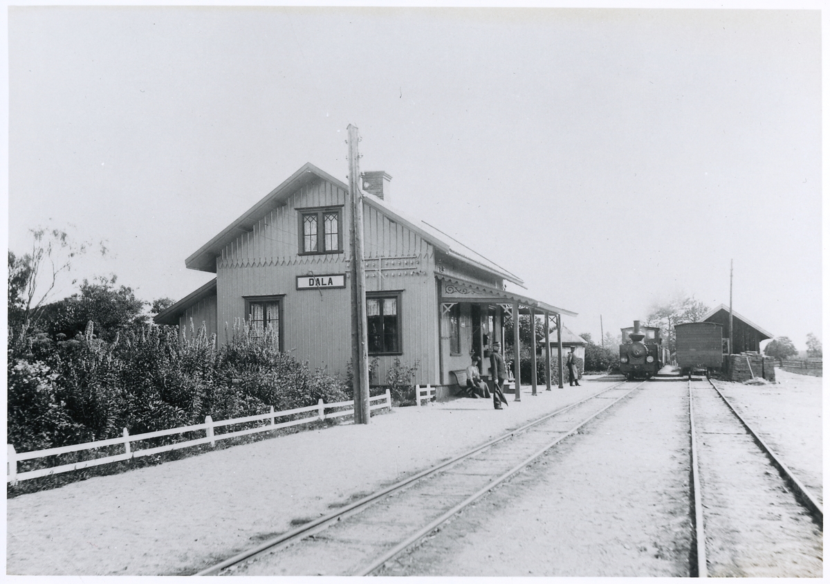 Vy vid Dala. Hållplats anlagd 1873. Envånings stationshus i trä, moderniserat 1949