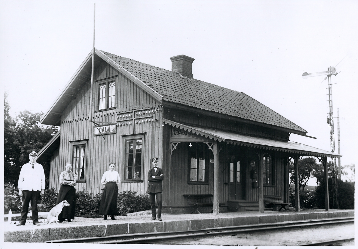 Vy vid Dala. Hållplats anlagd 1873. Envånings stationshus i trä, moderniserat 1949