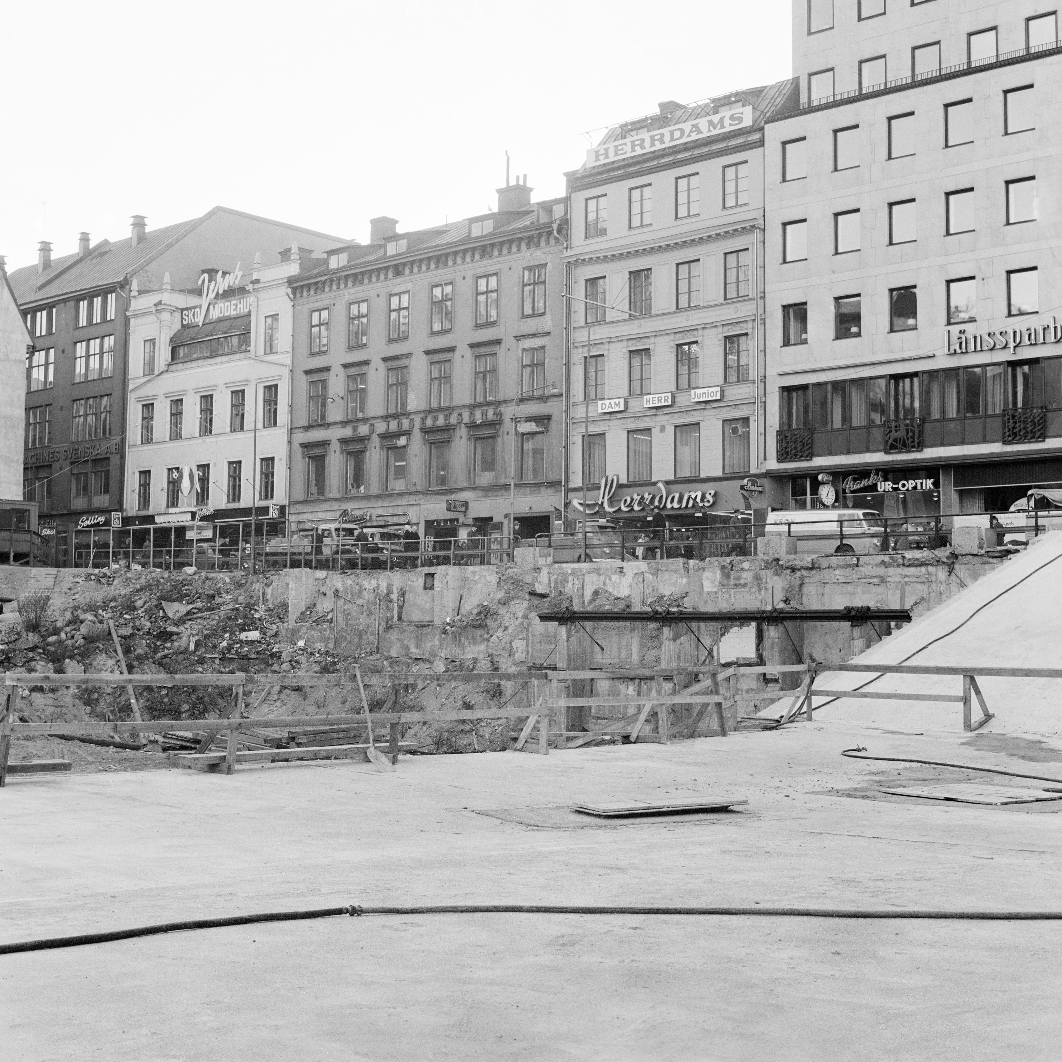 "Riksgropen" blivande Sergels torg mot Drottninggatan.