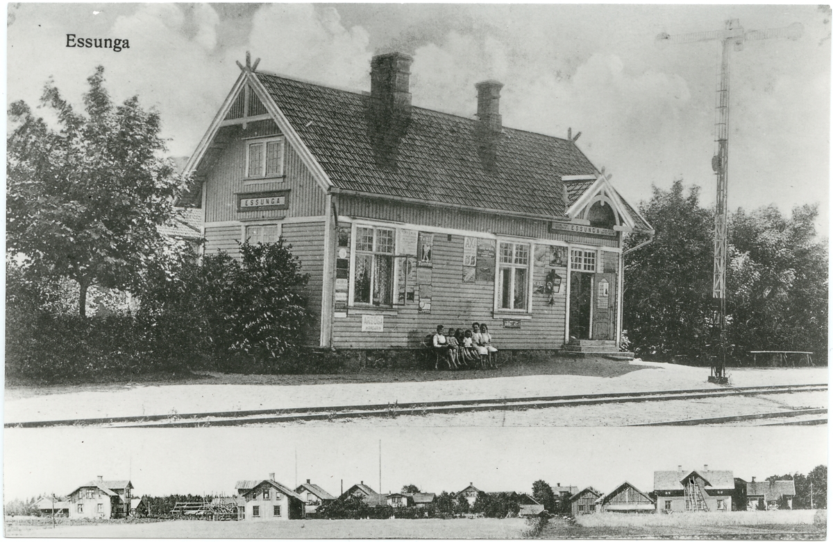 Essunga station omkring sekelskiftet. Från 1970-08-24 så var det lastplats, och den lades ner 1977-05-22.
