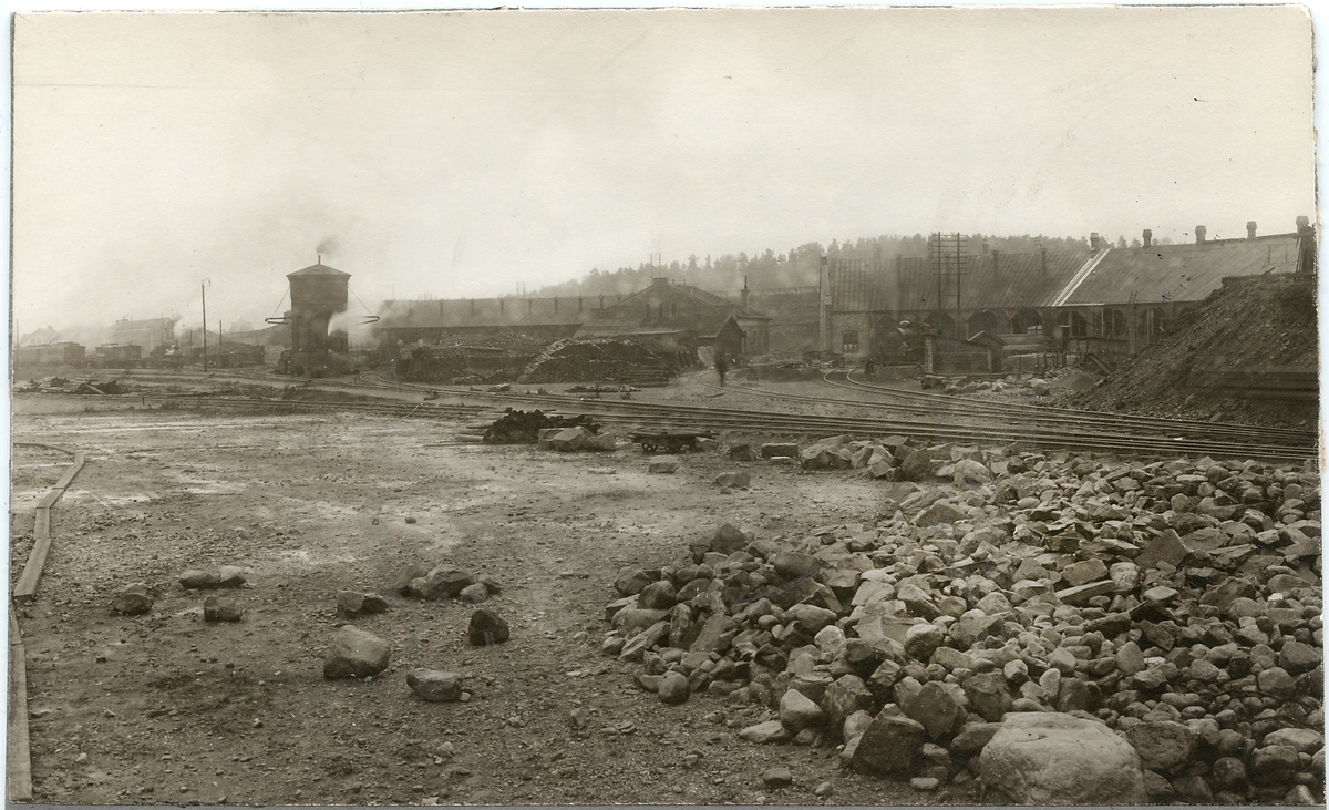 Falun station utvidgningsarbeterna. GDJ, Gävle Dala Järnväg.