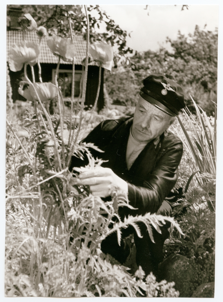 Titel: Stationskarl Johan August Larsson i trädgården vid banvaktstuga 184 B Floby.