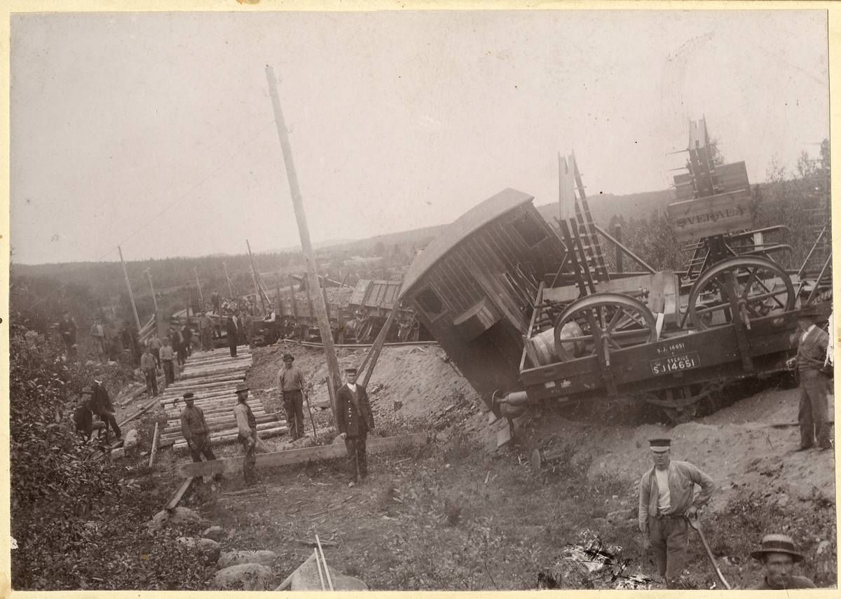Urspårning vid Graninge på linjen Långsele-Ragunda på 21 bansektionen. Statens Järnvägar, SJ godsvagn 14651.