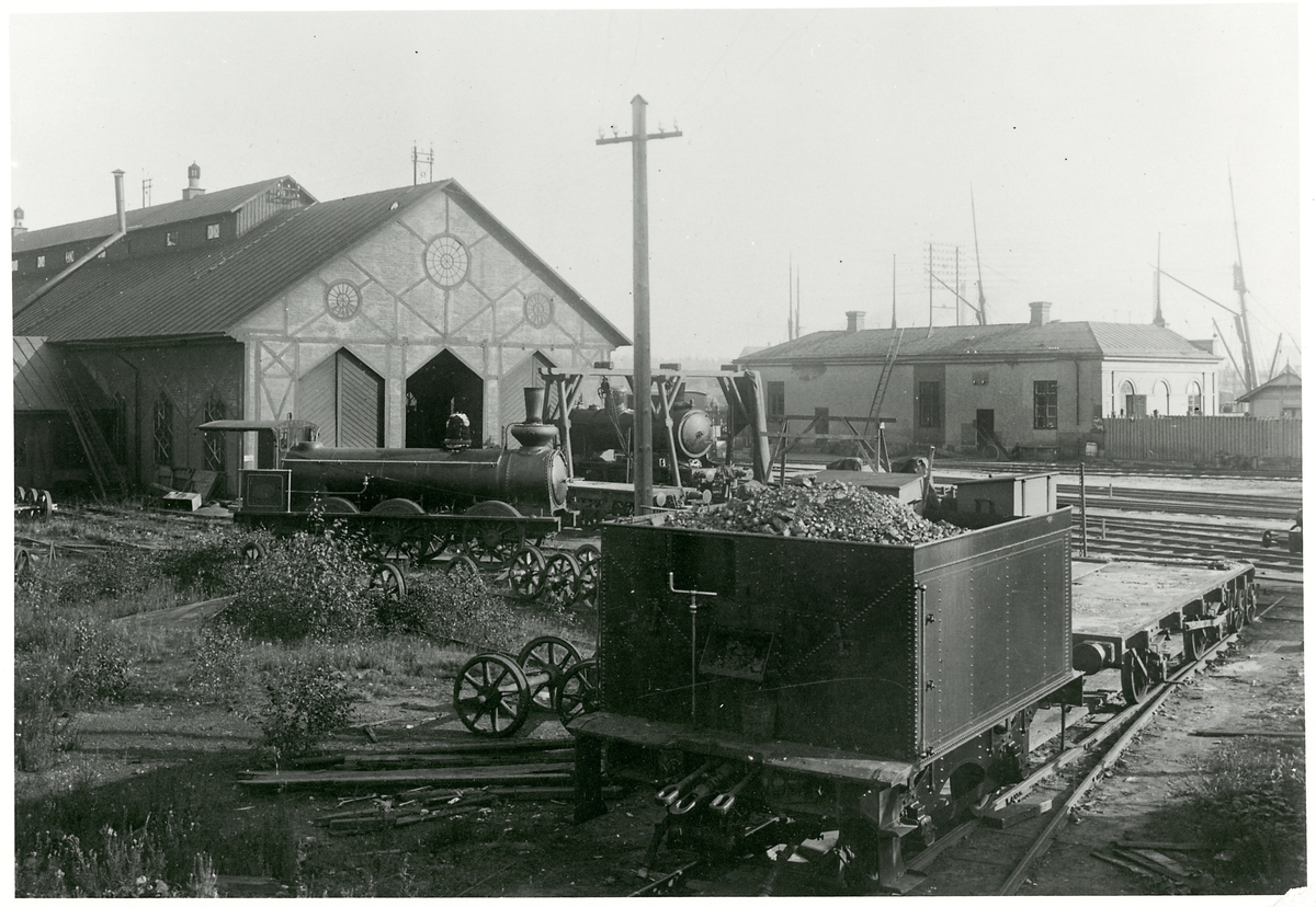 Bangården och verkstaden vid Gävle norra på 1920-talet. Gävle - Dala Järnväg, GDJ.