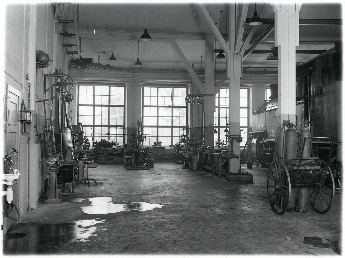 Ostkustbanans, OKB, lokstall. Interiör från driftverkstaden i Gävle juni 1936.