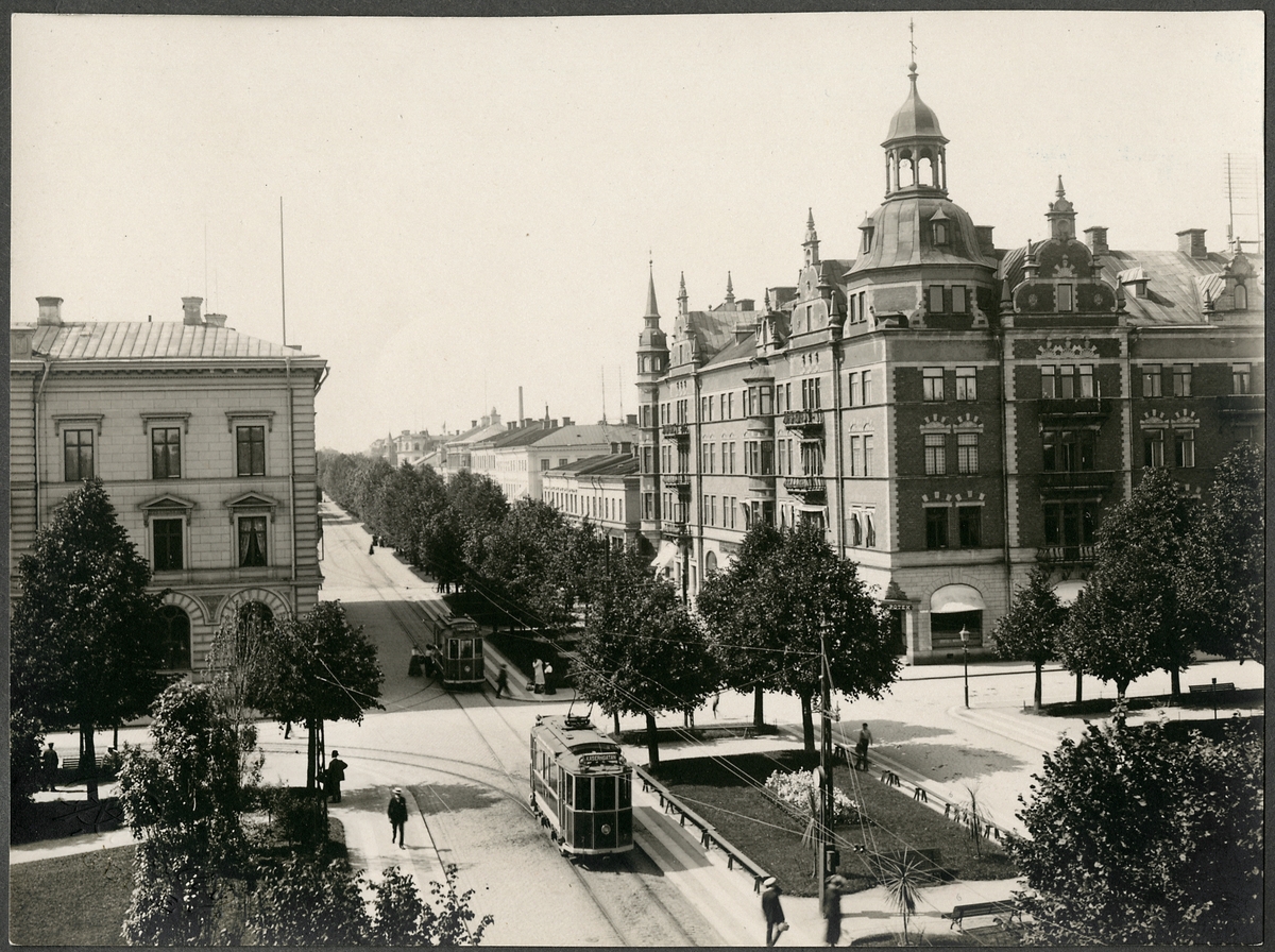 Nygatan i Gävle där vi ser spårvagn 7 rulla.