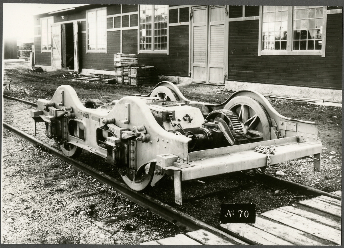 Motorboggi till Gävle spårvägars spårvagn nummer 1. Foto Aktiebolaget Svenska Järnvägsverkstäderna, ASJ, i Linköping.