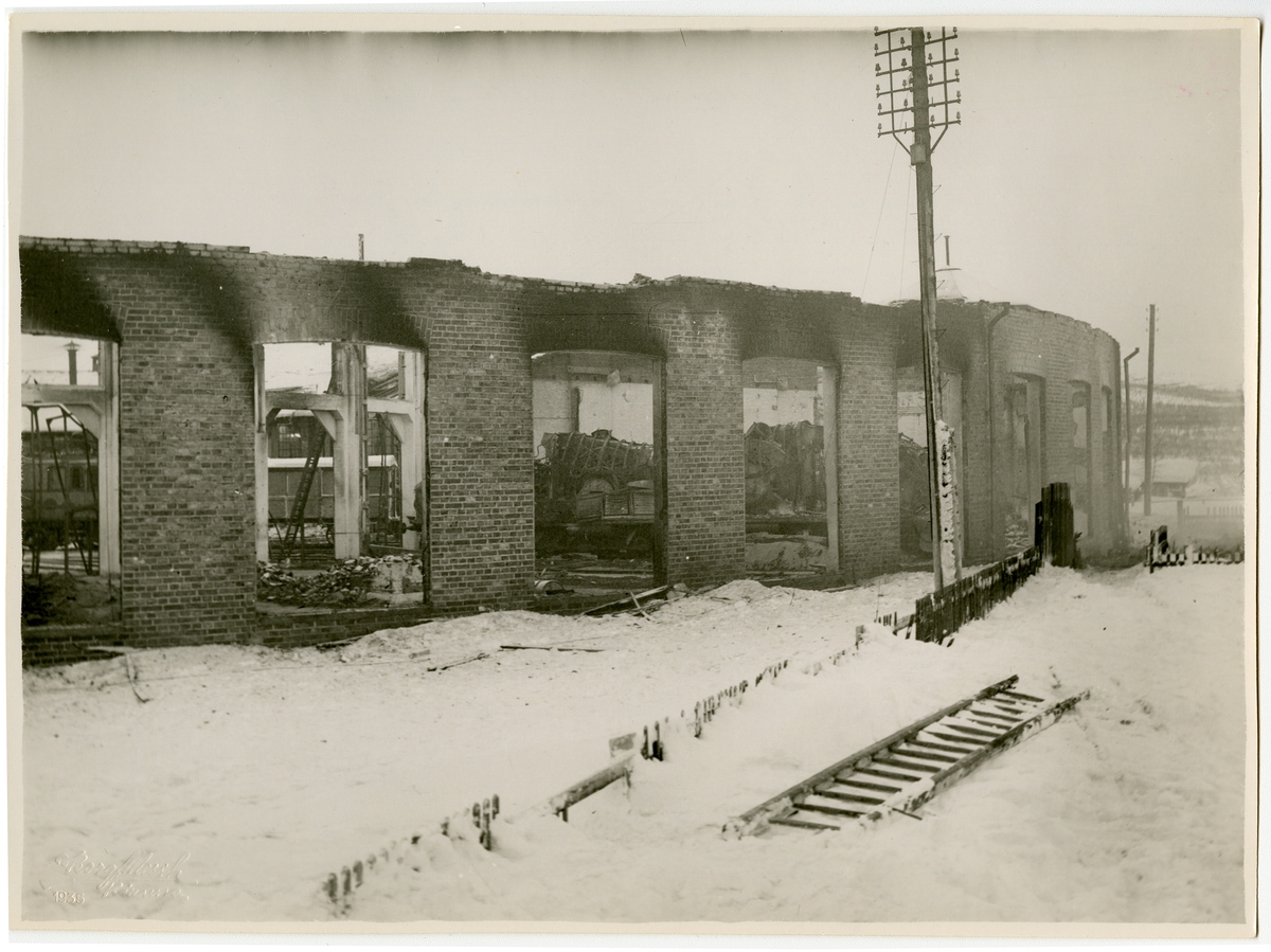 De brunna lokstallarna nr. 13--21 seda från baksidan.