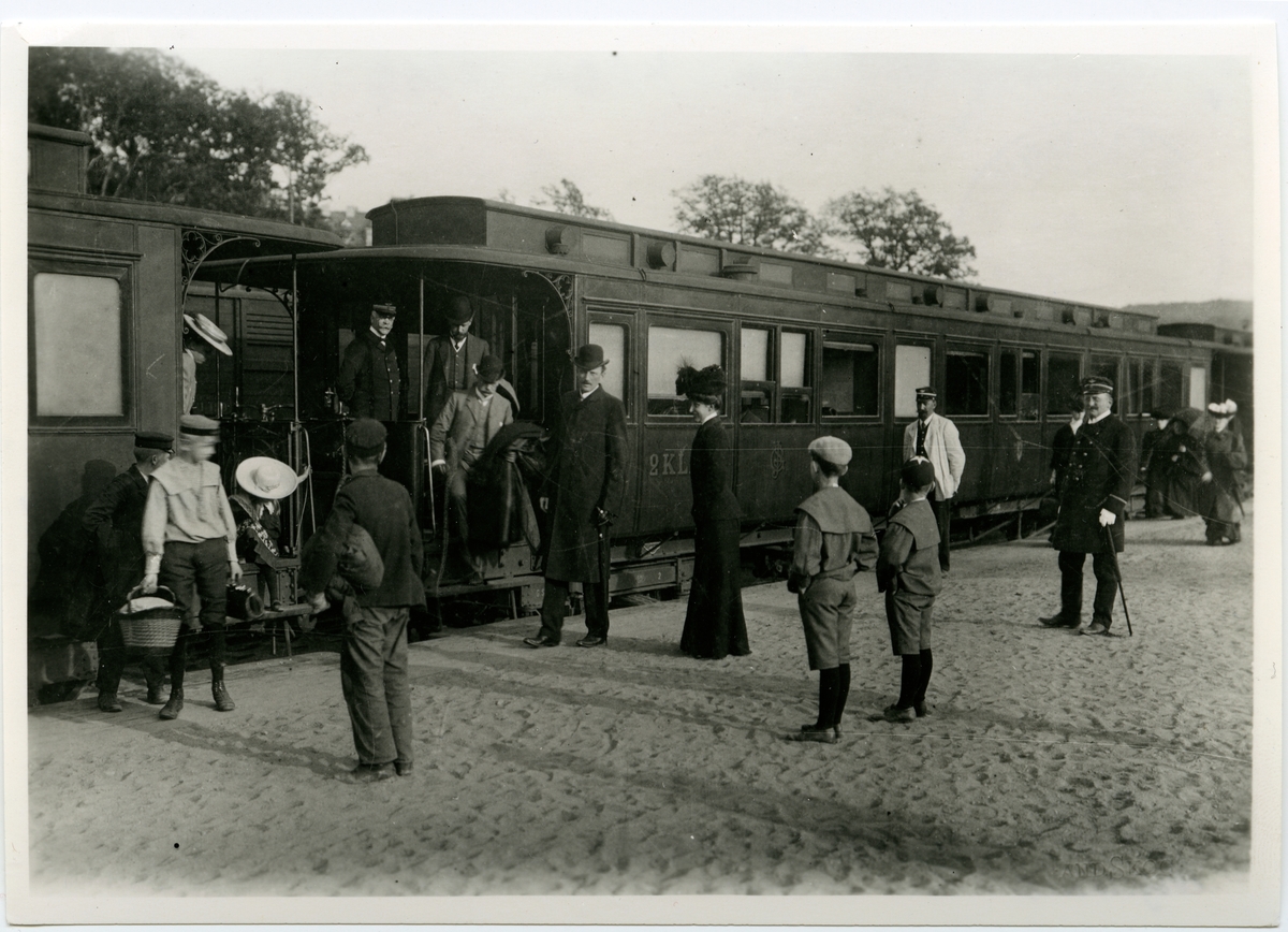 På Säröbanans station i Göteborg, Prins Carl och Prinssesan Ingeborg vid Göteborg-Särö järnväg von Platen, stinsen hette Holm och konduktören Krantz