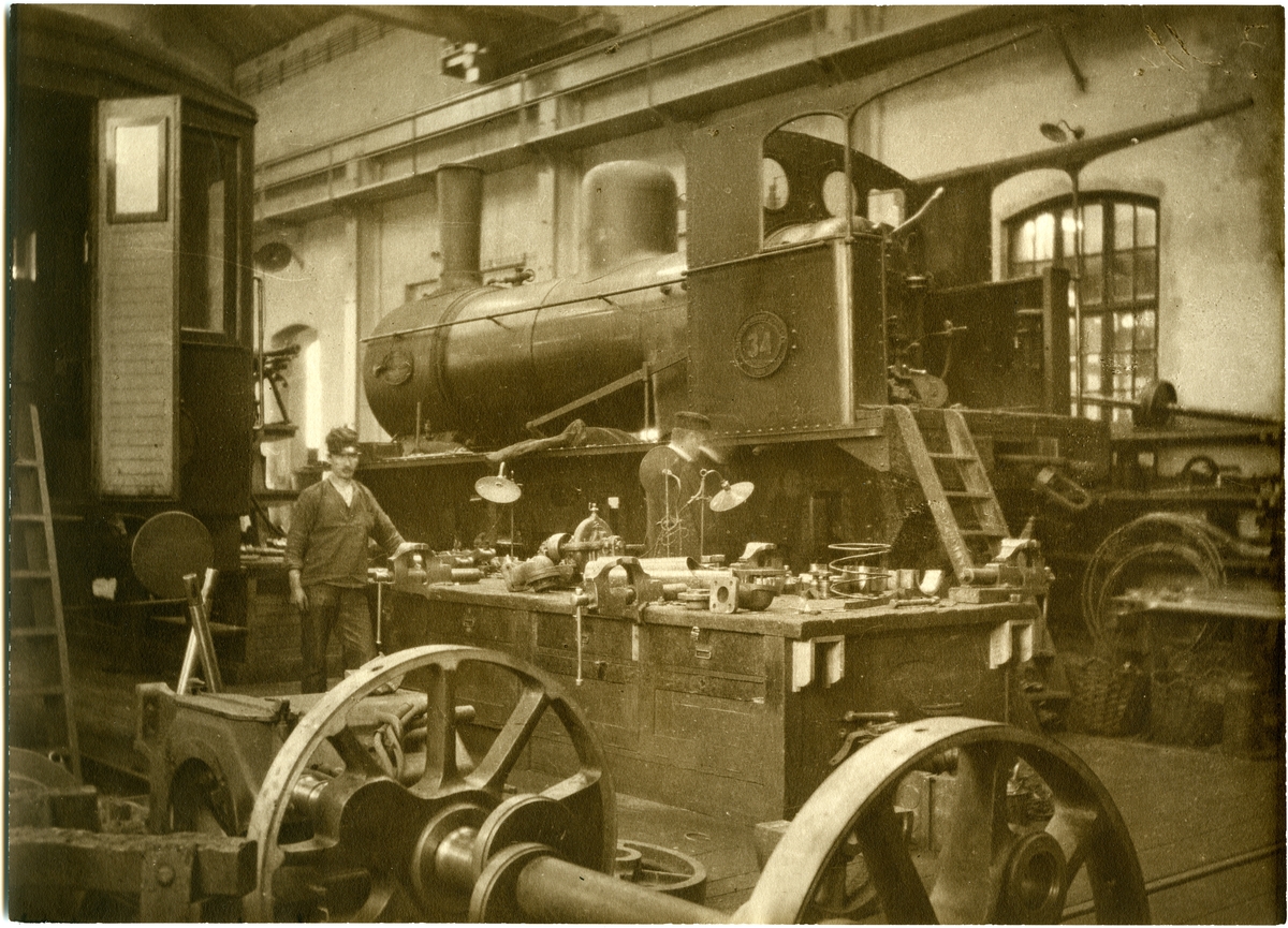 Verkstadsarbetare Johansson (vid verktygsbordet).