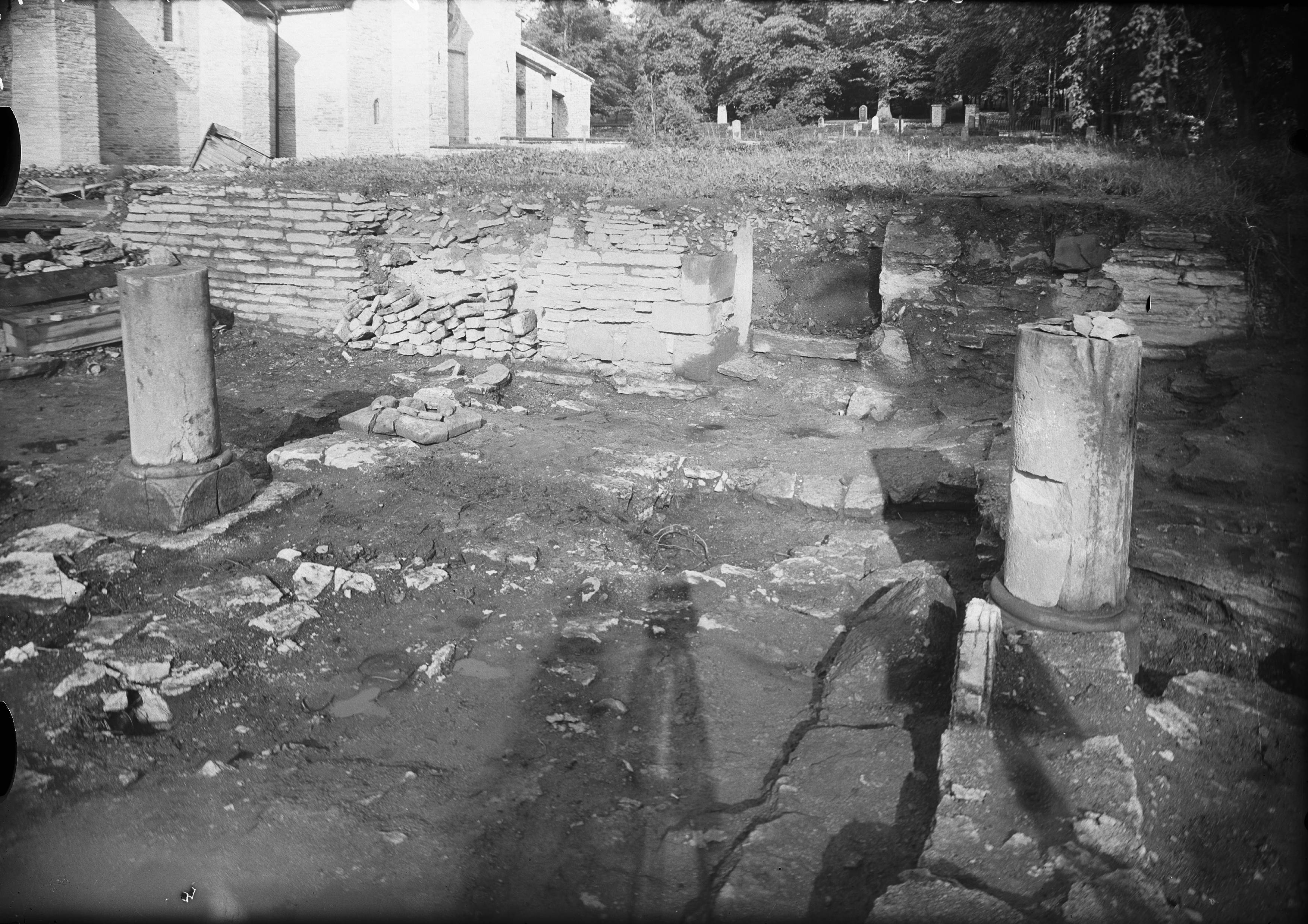 Kolonner, den tredje och fjärde, och dörröppning i västra väggen. Från sydväst.