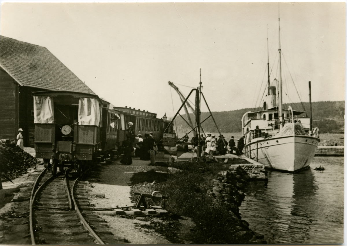 Stationen öppnades 1888-11-13 och nedlagd 1958. FWÖJ, Fågelsta - Vadstena - Ödeshögs Järnvägs persontåg med bland annat sommarvagnar. Det syns bockkranen innan demonteringen.
