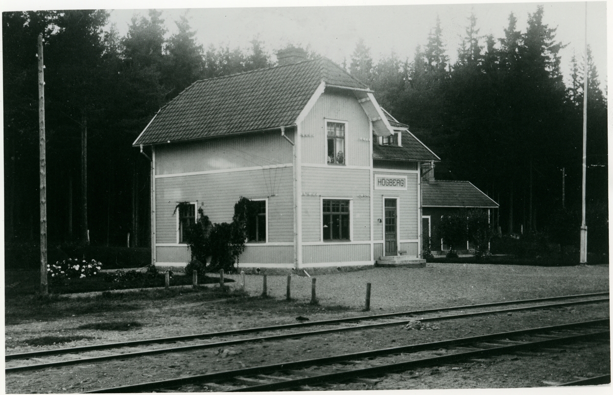 Högberg station anlades 1910. Envånings stationshus i trä i vinkel. Stationen låg på sidospår till Degerfors Järnverk som öppnades 1907. Stationen upphörde 1989-10-01.