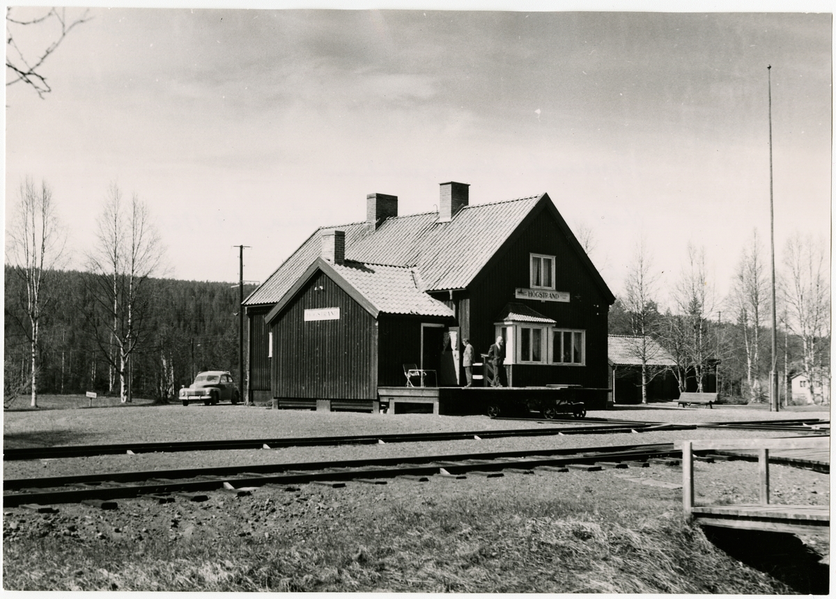 Titel: Text på kortet- Nedl av bandelen Sälen - Särna 1.9.1961. Foto 31.8.61. Volvo PV 444 bakom stationshuset.
