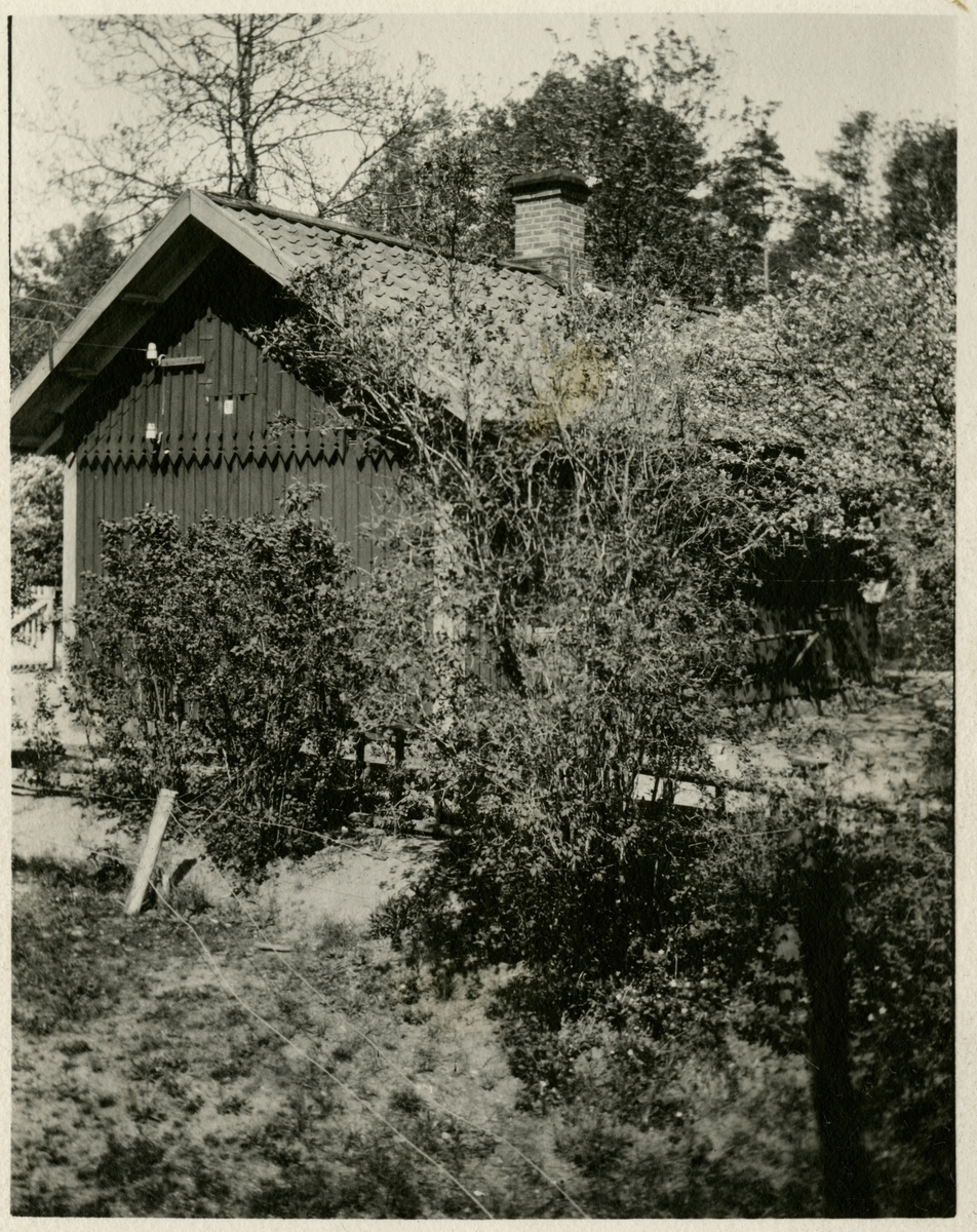 Banvaktstuga, Karlsborg, äppelblom och stugtaket