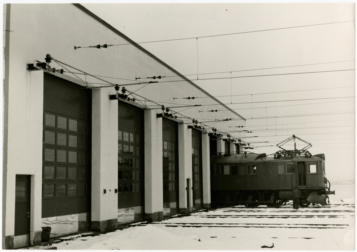 Statens Järnvägar, SJ Of 81 vid den nya lokstationen, invigd 1955-03-17.