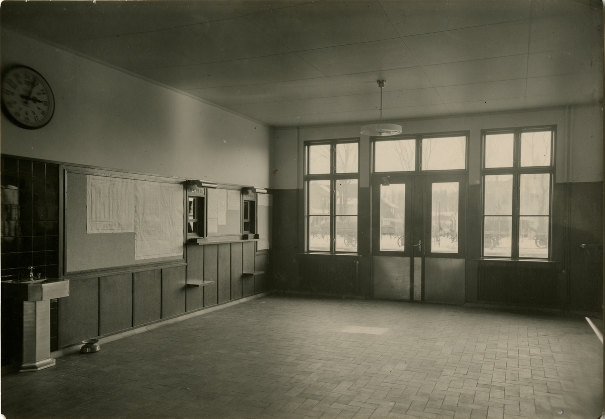Väntsalen mot bangården tagen år 1935, efter ombyggnationen.