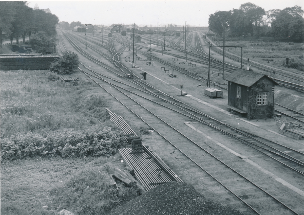 Kristianstad - Hässleholms Järnväg, CHJ Kristianstads bangård i samband med breddningen av BKB Blekinge Kustbanor 1954
