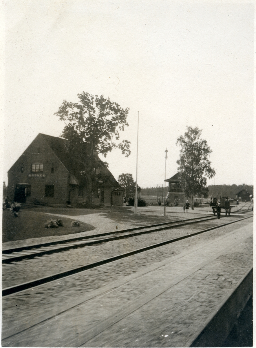 Titel: Stationen anlades 1912. 1939-40 moderniserades såväl expeditionslokalerna som bostadslägenheten. Tvåvånings tegelbyggnad