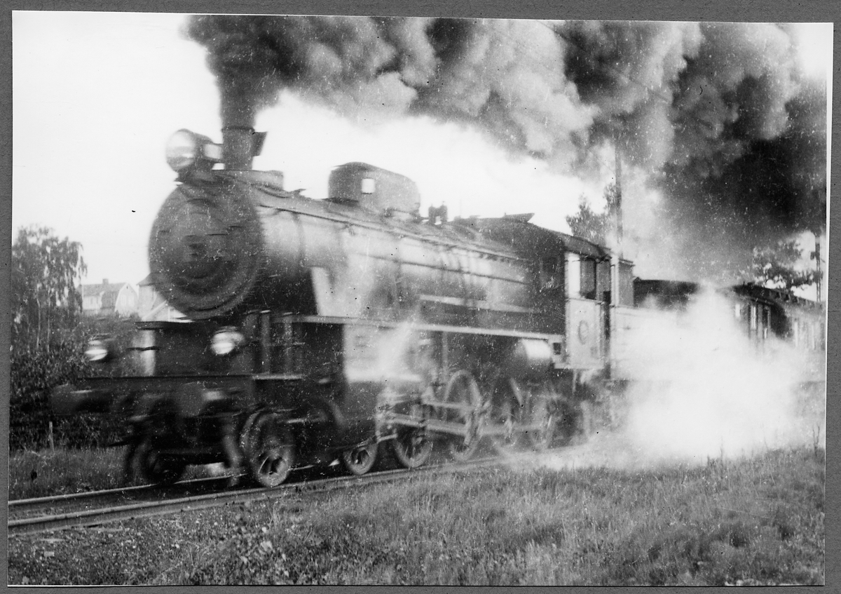 Persontåg draget av Halmstad Nässjö Järnväg, HNJ G12 44.