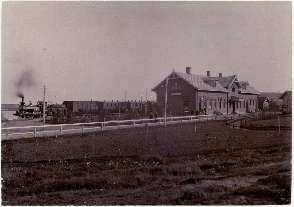 Titel: Luleå station. Ånglok med tågsätt. Loket har littera A.