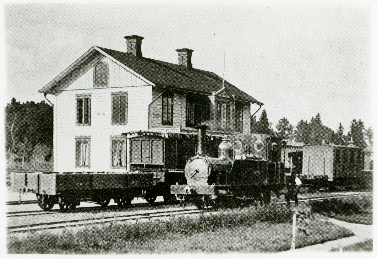 Stationen anlagd samtidigt med banan. 1938 moderniserades stationshuset, två våningar i trä .
