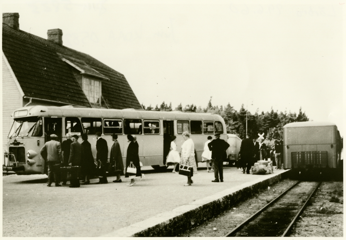 Titel: Station öppnad 19.12.1921. En- och enhalvvånings stationshus i trä