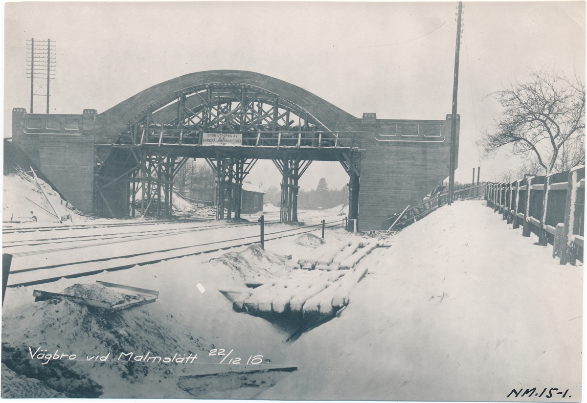 Statens Järnvägar, SJ, Vägbro vid Malmslätt. Bron utföres av skånska cementgjuteri.