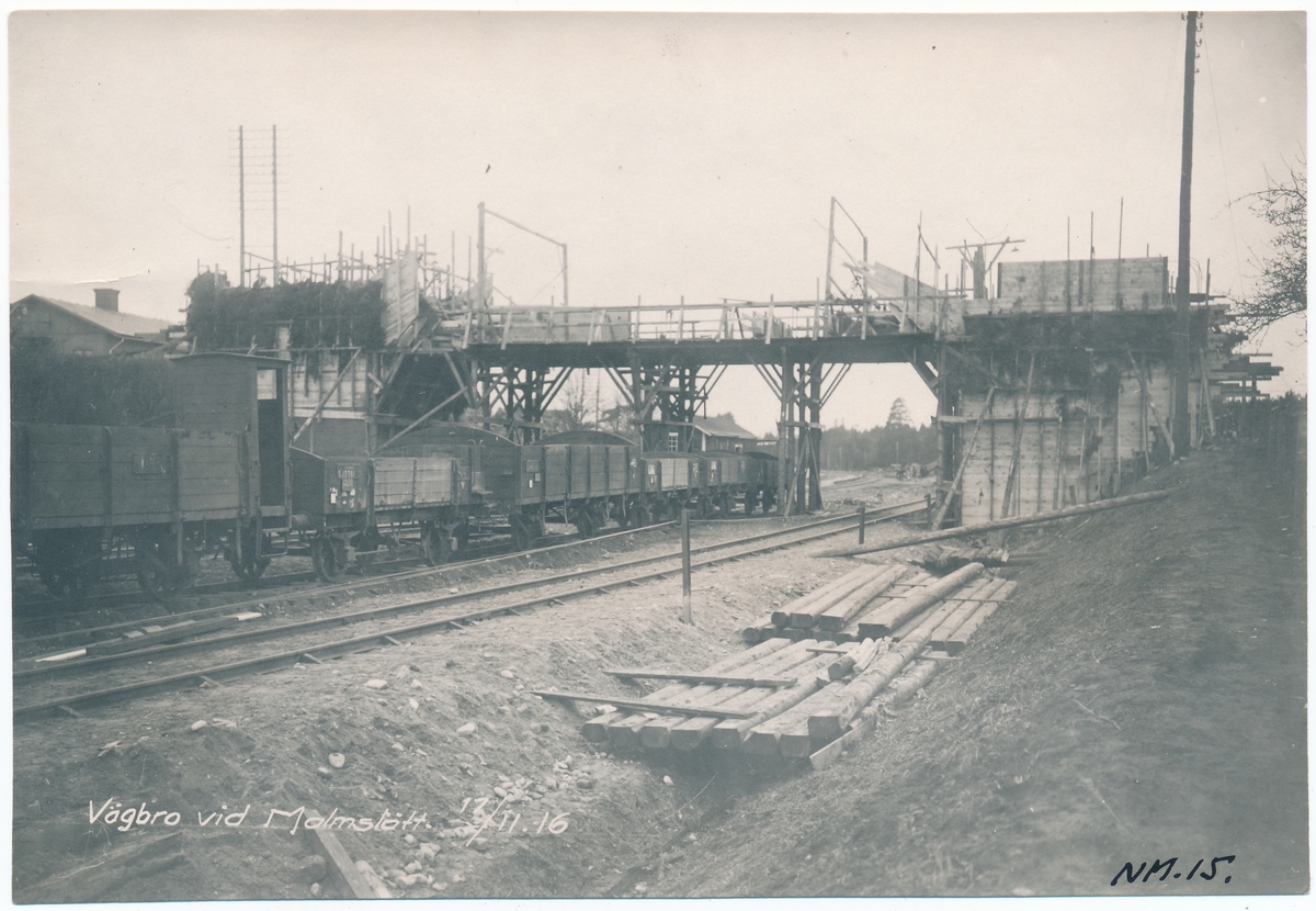 Statens Järnvägar, SJ, Vägbro vid Malmslätt. Bron utföres av skånska cementgjuteri.