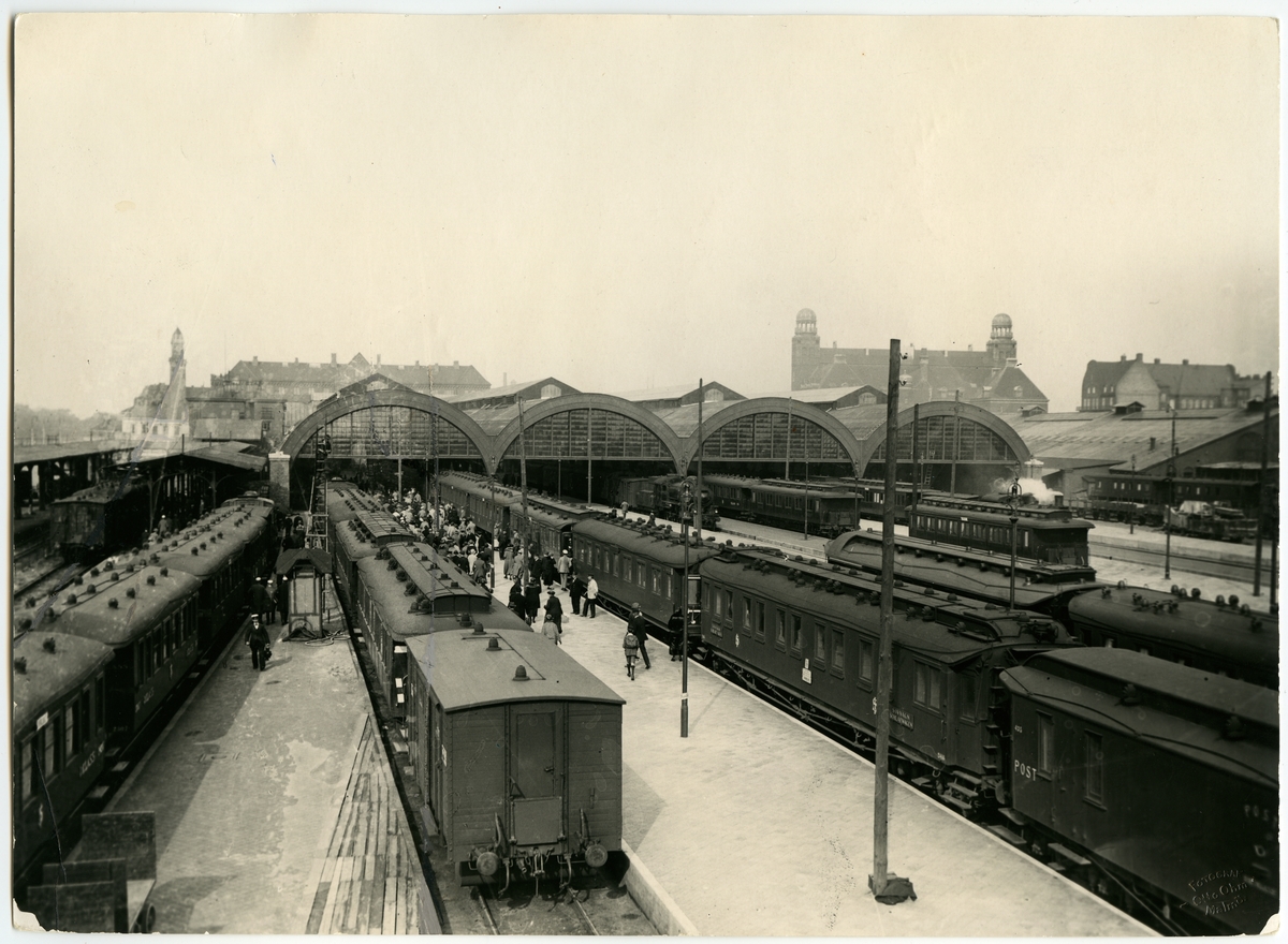 Titel: Banhallarna sedd från öster. Kontinentaltåg mot Trelleborgs Färjehamn