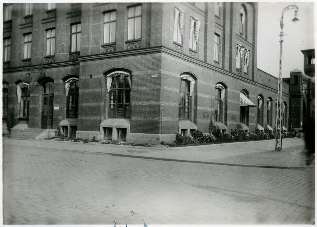 Titel: Malmö central Exteriör med blomsterrabatter