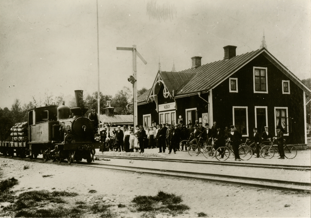 Titel: Mjöbäck station Ett vykort stämplat 1904