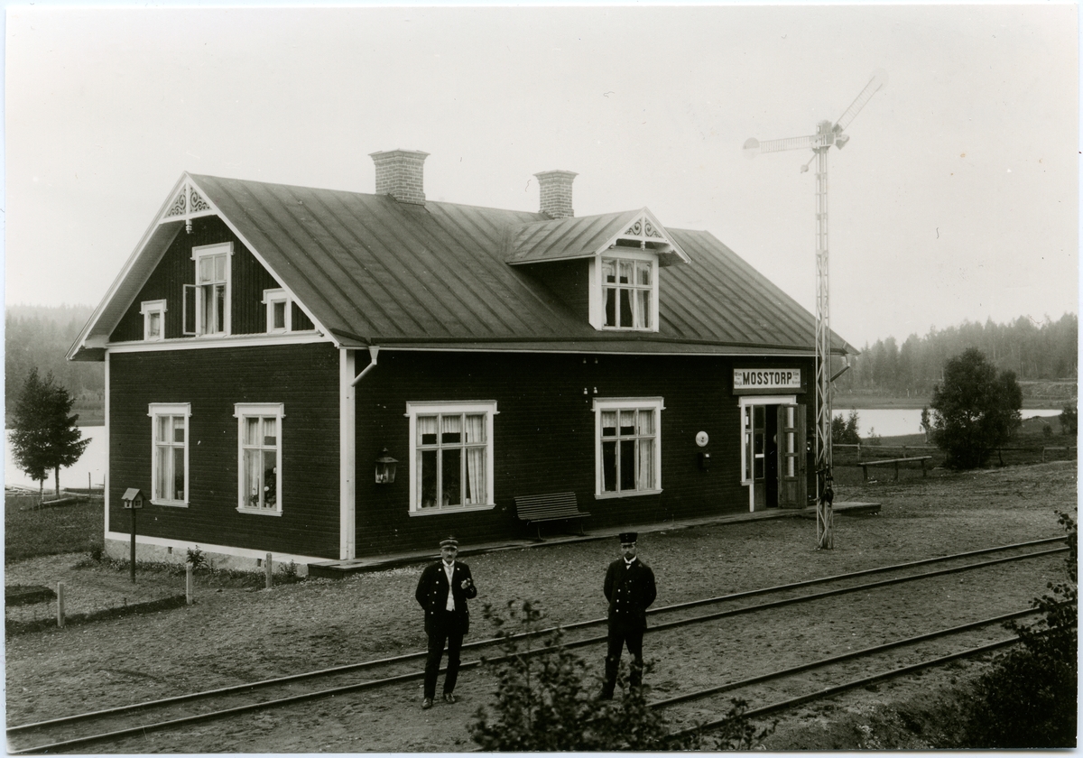 Titel: Text på bilden - Stationsmästare P. Bursell. Stationshuset i Mosstorp.