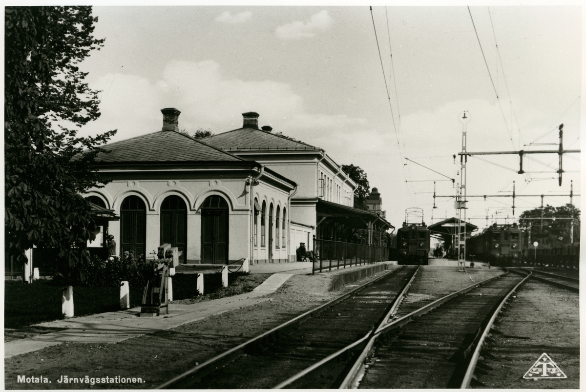 Titel: Kopia av vykort föreställande Motala stationsområde.