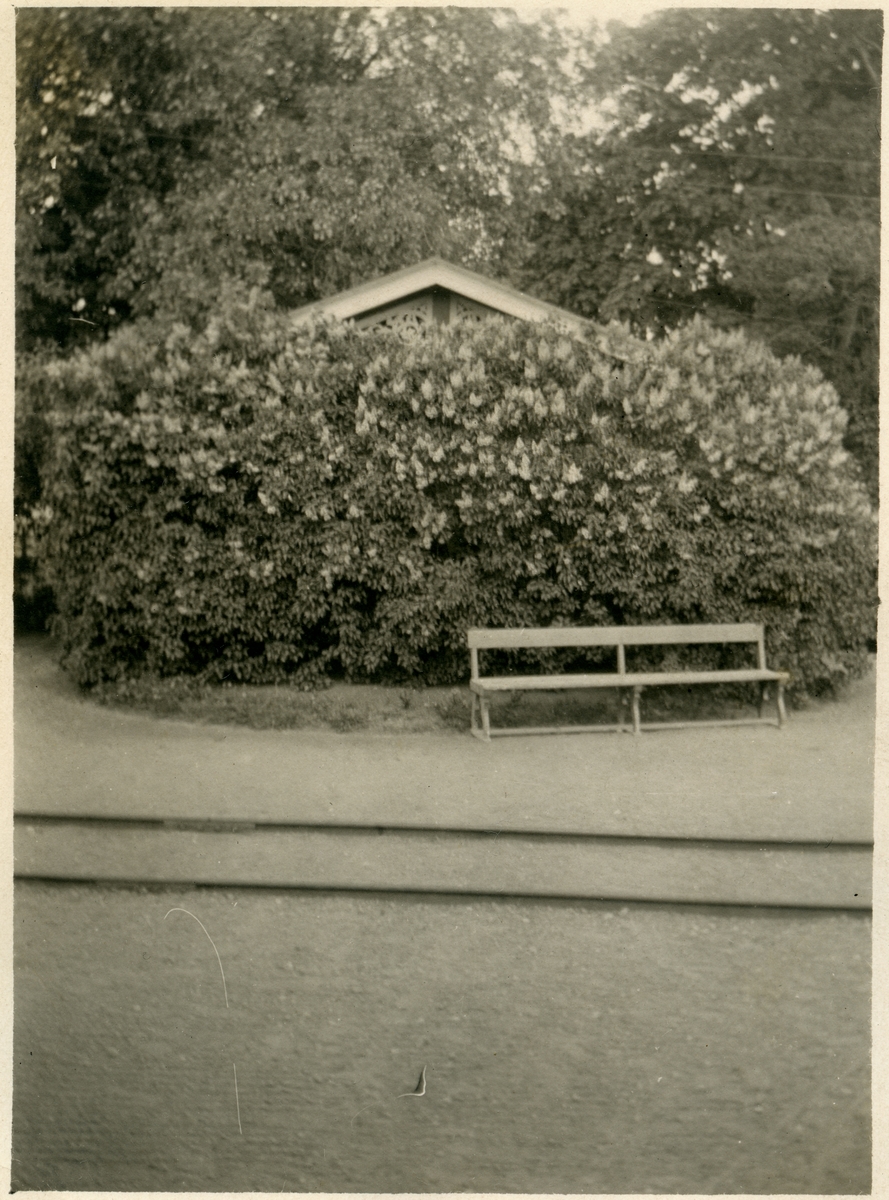 Bild från trädgårdsdirektör Enoc Cederpalm. 1910 anställdes av SJ som trädgårdsdirektör. Text på bilden Syren slöja öfver No 3.