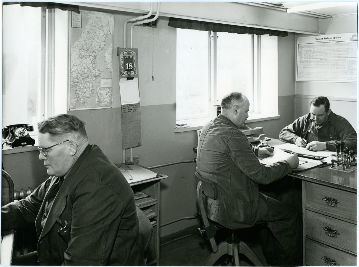 Förrådskontor Mörby Verkstad, från vänster A. Fernström, E Dahl, K Trostedt