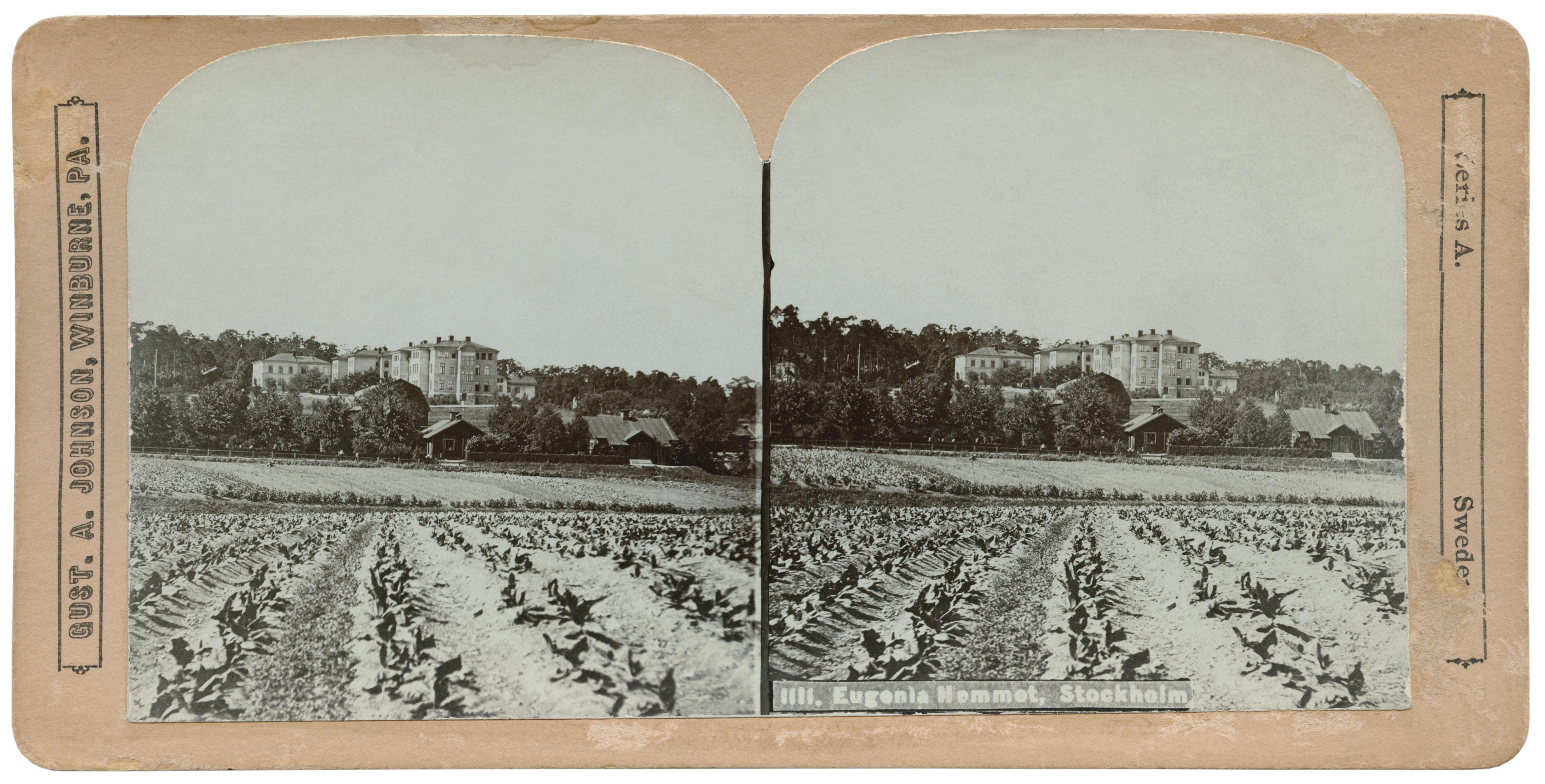 Utanför Stockholm. Sjukhem för fattiga och funktionshindrade barn, byggt 1896. Stereofotografi. Gust. A. Johnson, Winburne, PA. Series A. Sweden.