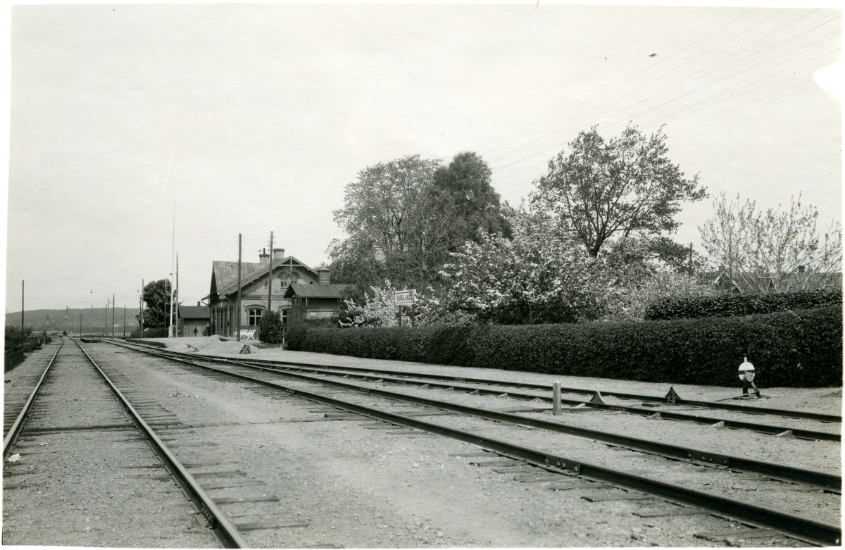 Titel: Stationshus med hagtornshäck och frukträdgård
