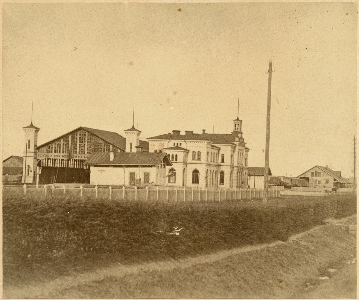 Norrköping stationsområde. Tvåvånings stationshus i sten, invigdes 1866-07-02