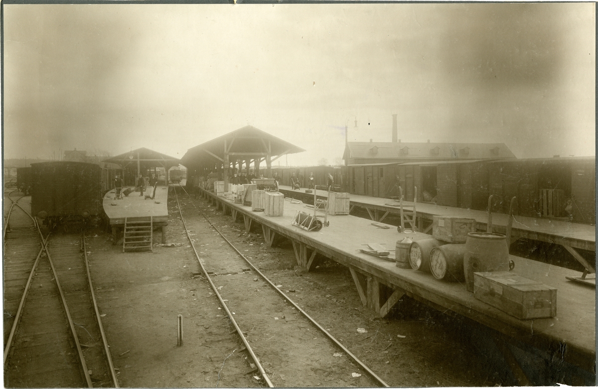 Text på bilden - Provisoriska omlastningsbryggor 1917, Nässjö.
